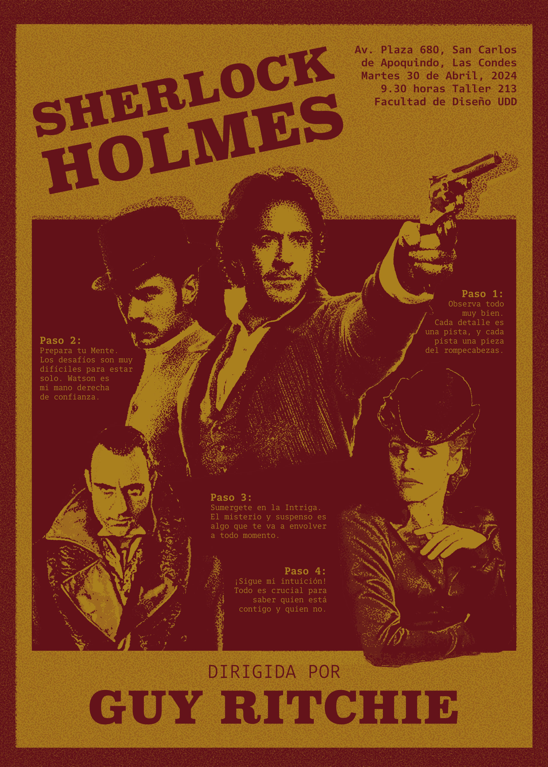 desarrollo de afiches para un proyecto dirigido a cinéfilos en base a las películas del director Guy Richie. la propuesta busca crear una unidad a través de colores y texturas. también es acompañada por una animación que puede ser vista en AR a través de la app ArtVibe.
